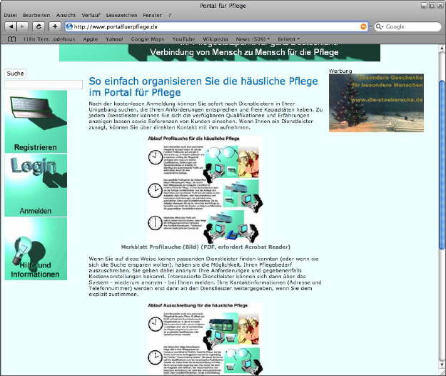Startseite mit den Funktionen - Registrieren: erstmalige Anmeldung - Anmelden/Login: erneute Anmeldung - Hilfe und Informationen
